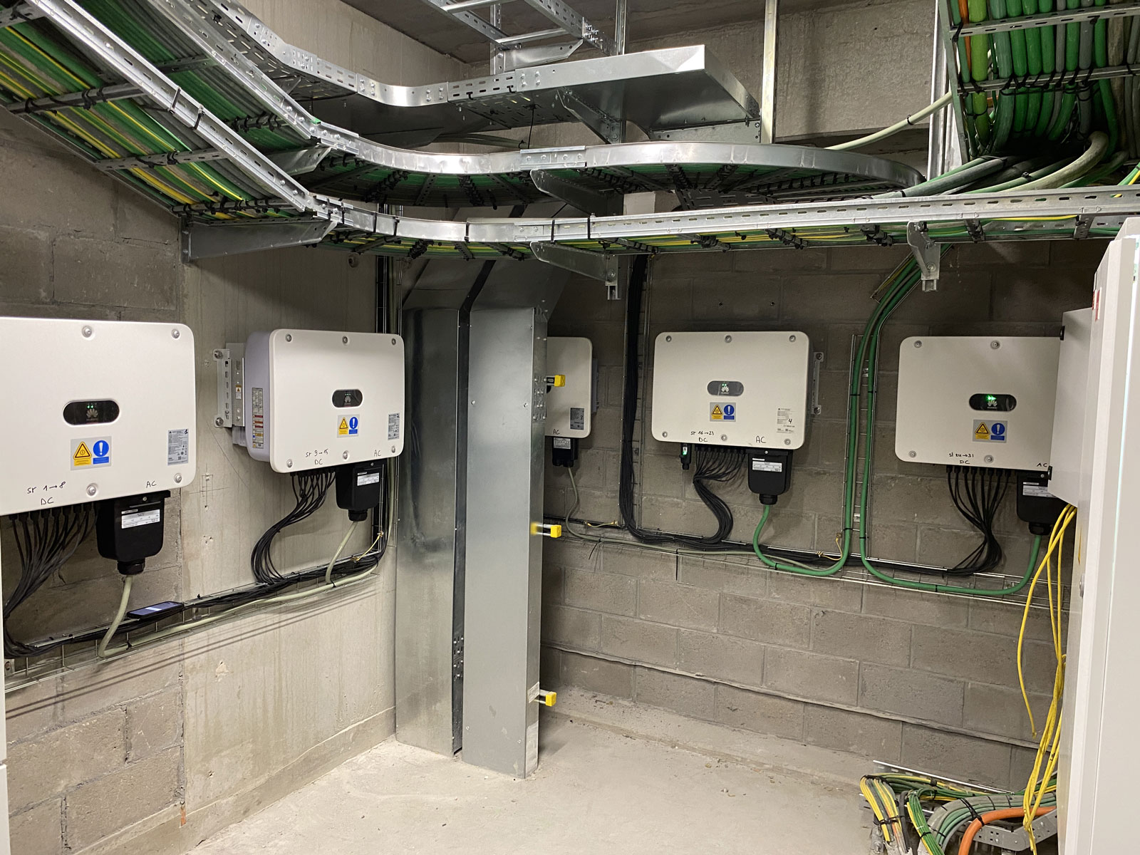 Westland Shopping Center est l’un des plus grands centres commerciaux de Belgique avec une superficie 50 000 m² d’espaces commerciaux, abritant 110 enseignes variées. L’installation photovoltaïque a été réalisée sur le parking du centre commercial, combinant une structure métallique en IPE et une partie sur une toiture plate orientée est-ouest. Les cinq onduleurs Huawei, de différentes puissances, assurent une gestion efficace de l’énergie produite. Cette configuration optimise l’espace en transformant le parking en centrale photovoltaïque tout en maintenant sa fonction initiale.